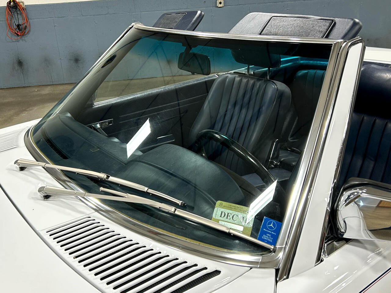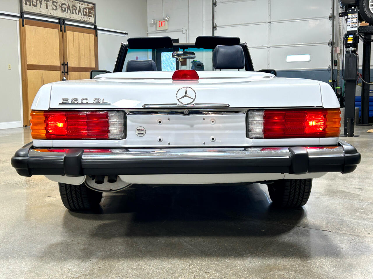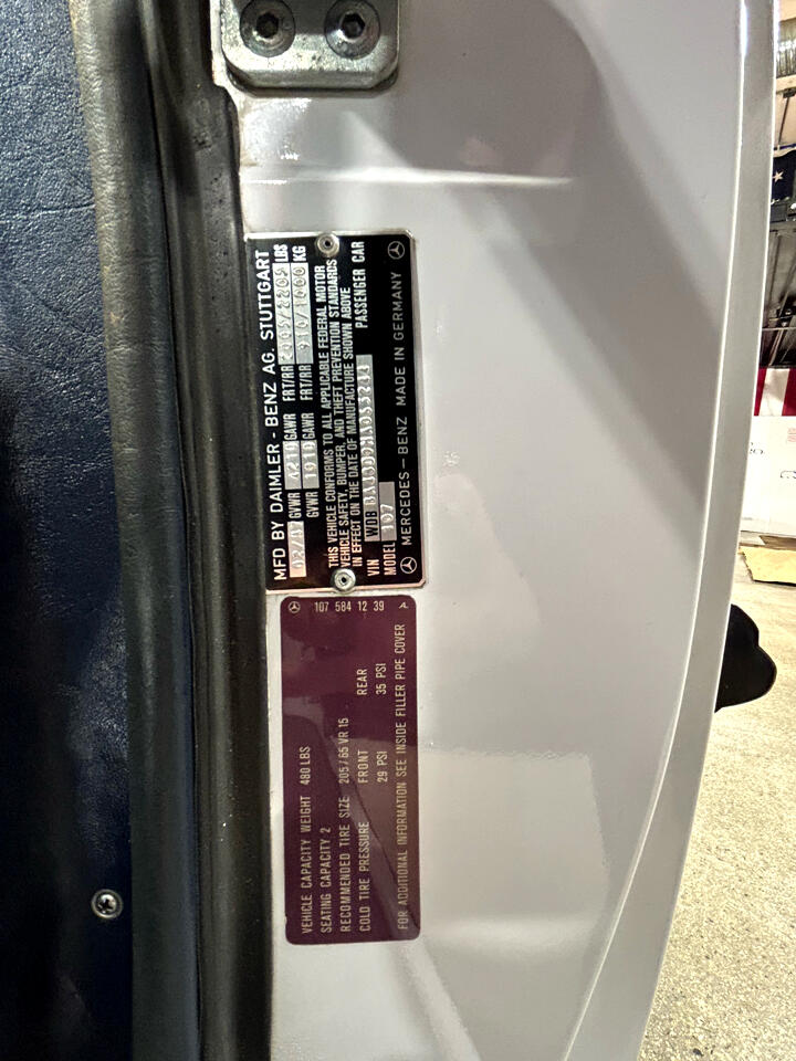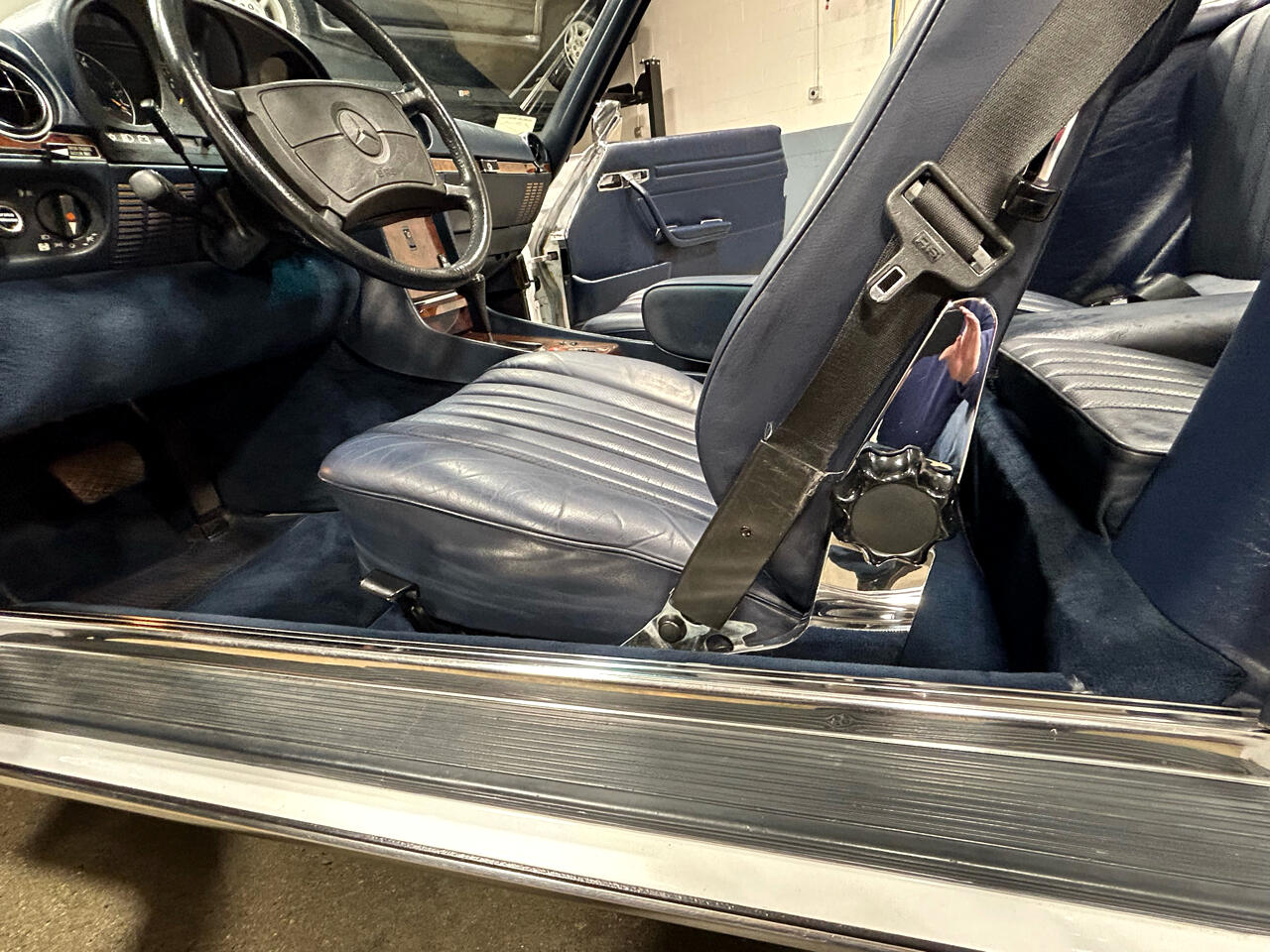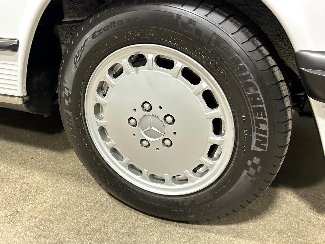 This 1987 Mercedes-Benz 560SL was purchased new by the current owner from Marsh Motors in Hamden, Connecticut, and it shows 28k miles following registration history in that state. Finished in Arctic White over blue leather upholstery, the car is powered by a 5.5-liter V8 paired with a four-speed automatic transmission. Equipment includes a limited-slip differential, a dark blue soft top, a removable hardtop, silver-finished 15? Gullideckel alloy wheels, fog lights, electric windows, central locking, cruise control, and automatic climate control. The car is finished in Arctic White (147) and features a color-matched removable hardtop and a dark blue convertible soft top. Additional exterior equipment includes fog lights, a power antenna, and chrome-accented bumpers and trim. This R107 is offered on dealer consignment with a window sticker, manufacturer’s literature, a clean Carfax report, and a Connecticut title.