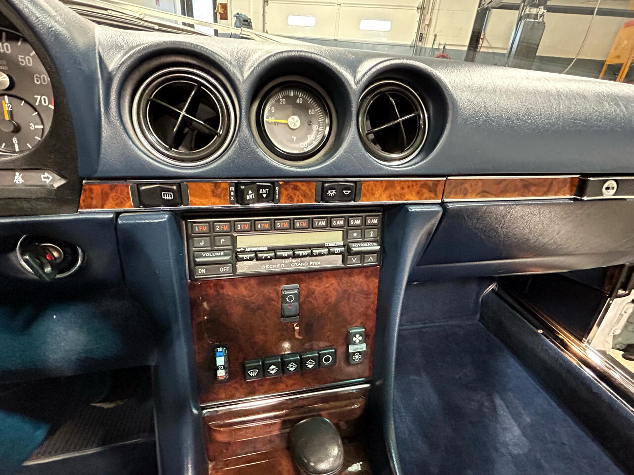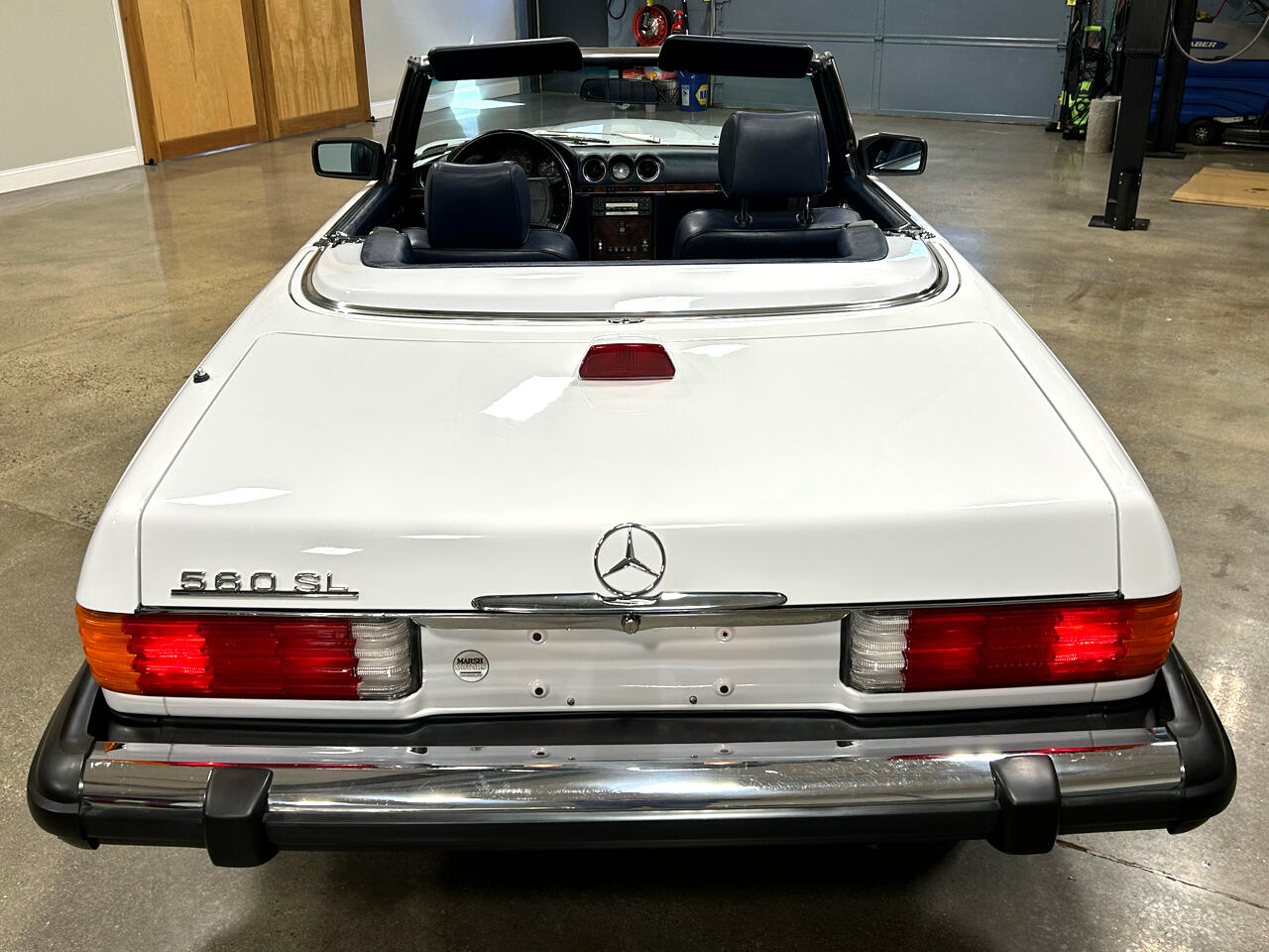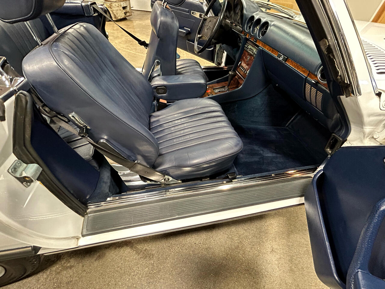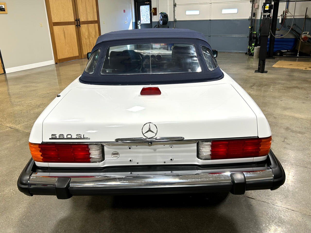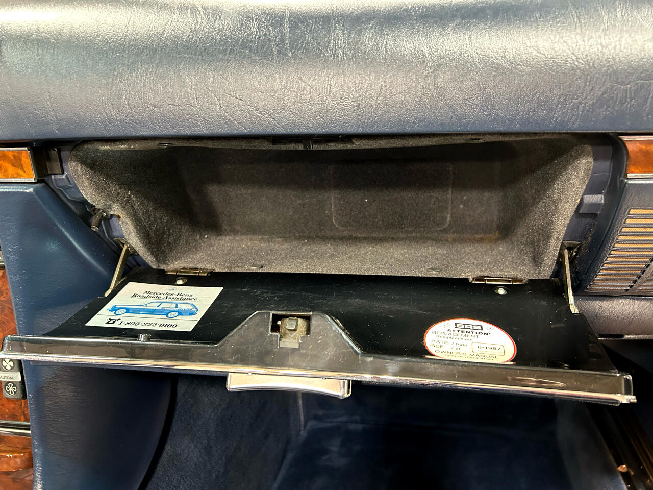 This 1987 Mercedes-Benz 560SL was purchased new by the current owner from Marsh Motors in Hamden, Connecticut, and it shows 28k miles following registration history in that state. Finished in Arctic White over blue leather upholstery, the car is powered by a 5.5-liter V8 paired with a four-speed automatic transmission. Equipment includes a limited-slip differential, a dark blue soft top, a removable hardtop, silver-finished 15? Gullideckel alloy wheels, fog lights, electric windows, central locking, cruise control, and automatic climate control. The car is finished in Arctic White (147) and features a color-matched removable hardtop and a dark blue convertible soft top. Additional exterior equipment includes fog lights, a power antenna, and chrome-accented bumpers and trim. This R107 is offered on dealer consignment with a window sticker, manufacturer’s literature, a clean Carfax report, and a Connecticut title.